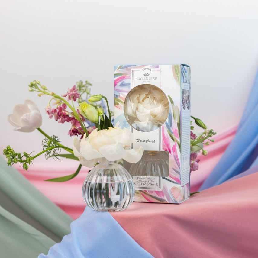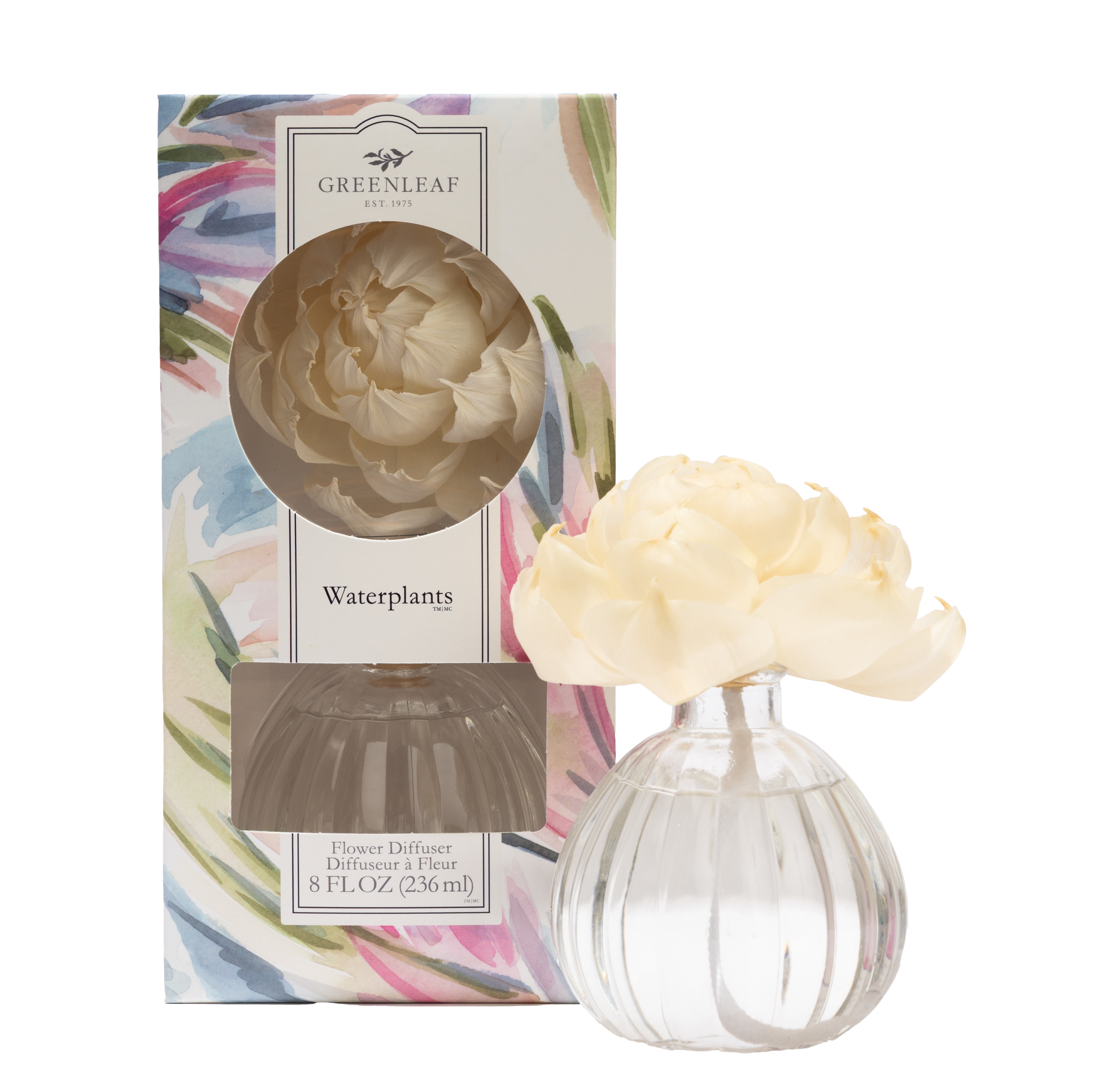 The Greenleaf Flower Diffuser includes fragrance oil and a sola paper flower that emits a beautiful, blooming scent for up to 60 days! As the fragrance oils are absorbed through the wick, the flower begins to “bloom,” slowly emitting the fragrance and eventually resembling real flower petals. With the neutral color of the oil and the large flower, it will enhance and complement any space.