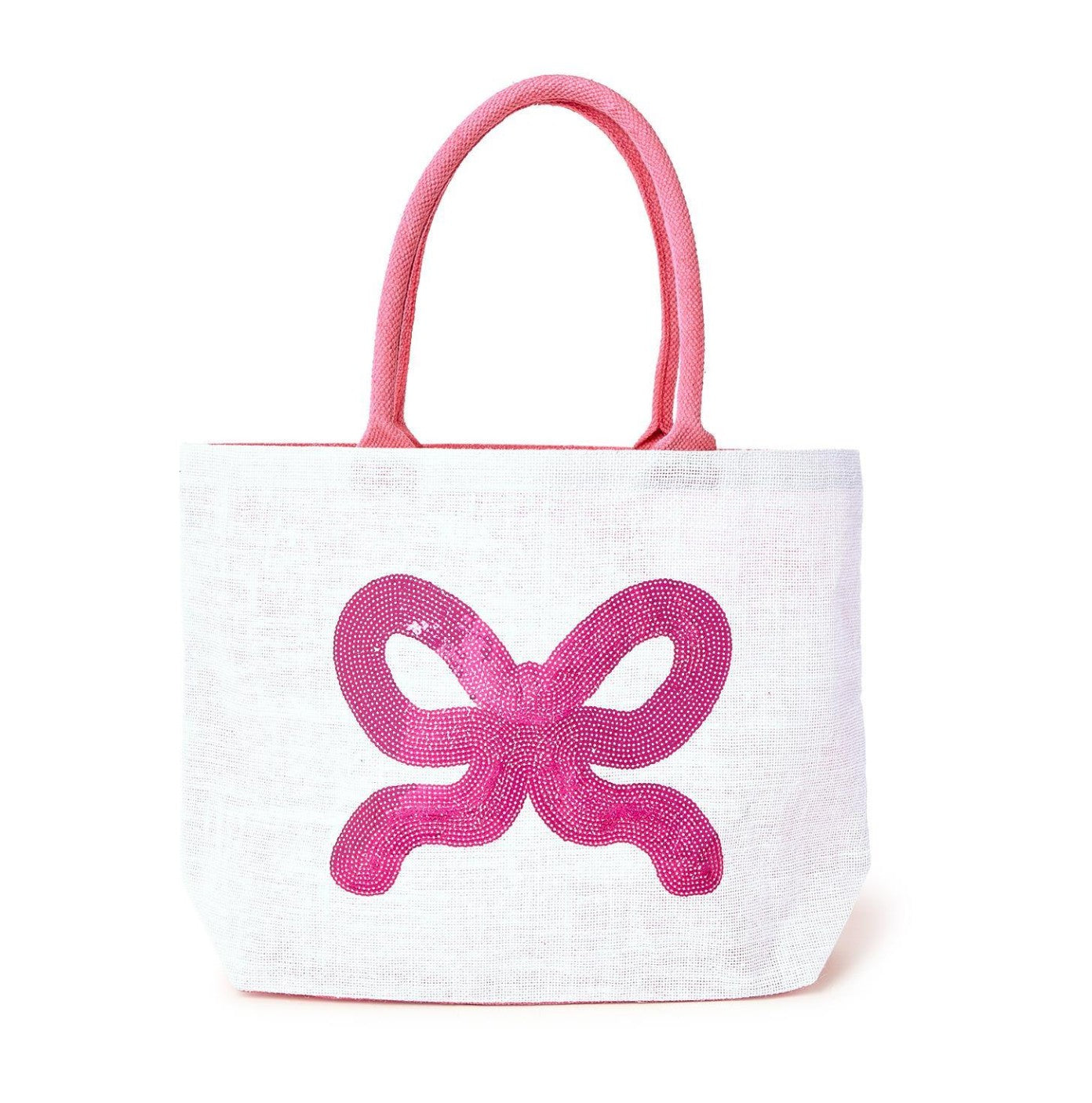 Introducing our Sequin Bow Tote Bag! This stylish bag combines a durable jute and cotton blend with a playful sequin bow design, making it perfect for everyday use or special occasions. Available in vibrant pink and red, it adds a festive touch to any outfit. Carry your essentials with ease in this cute and versatile tote!
