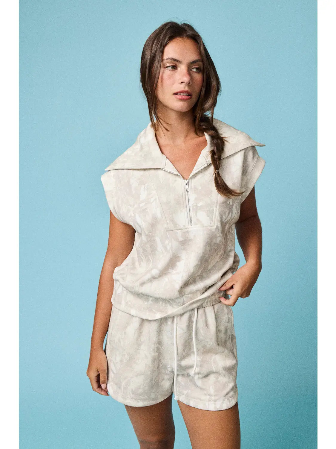 Half Zip Cropped Sweatshirt Slvls Top and Shorts Set