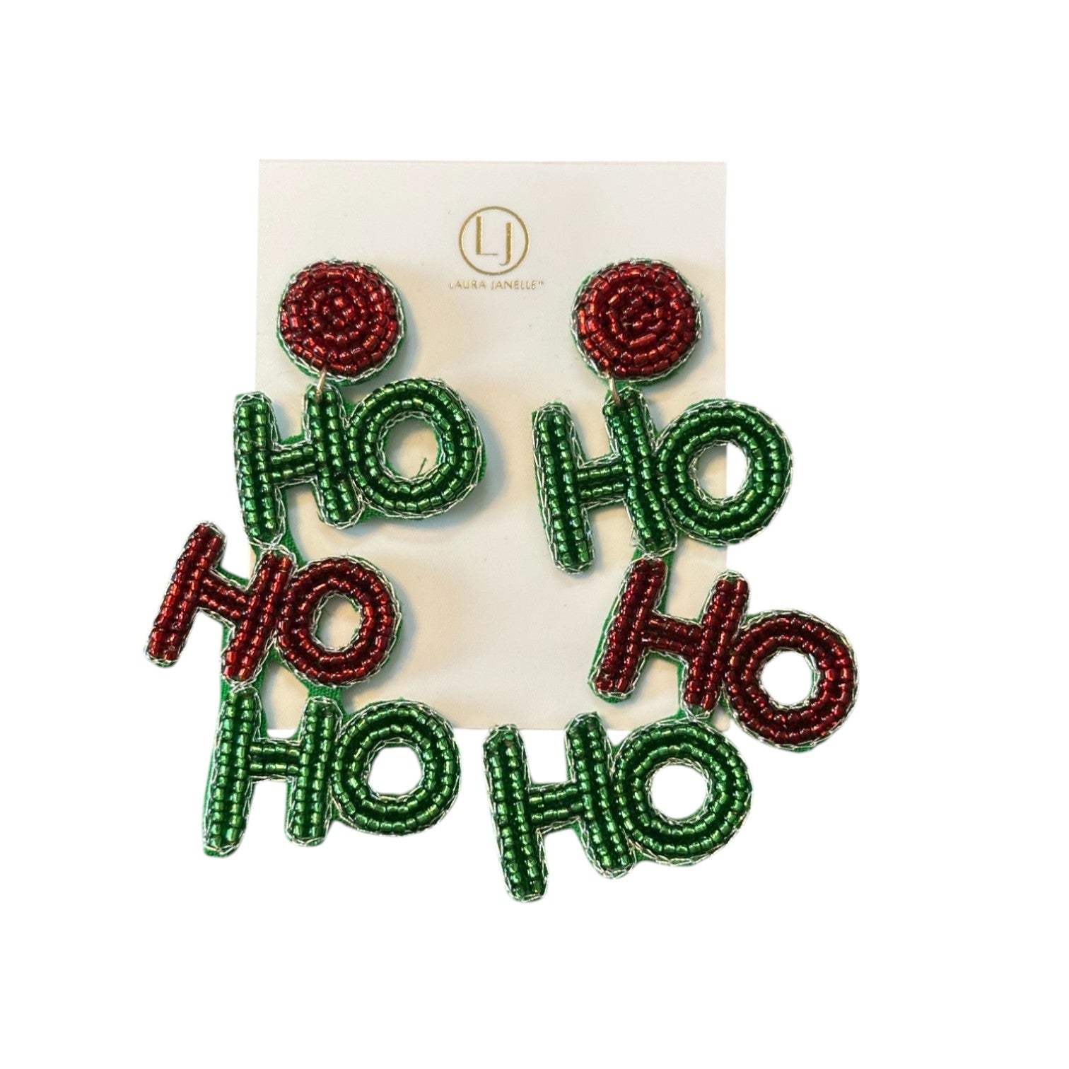 Add festive cheer to your holiday look with these playful "HoHoHo" earrings, featuring vibrant red and green beads. Lightweight and eye-catching, they’re perfect for spreading joyful vibes at any Christmas gathering.
