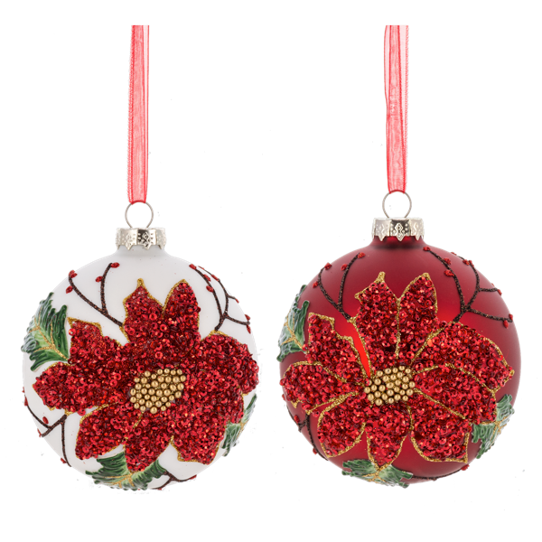 Add festive sparkle with our playful Poinsettia Ball Ornaments, available in classic white or vibrant red. Each ornament features glitter detailing that catches the light beautifully, bringing holiday cheer to any tree or décor.