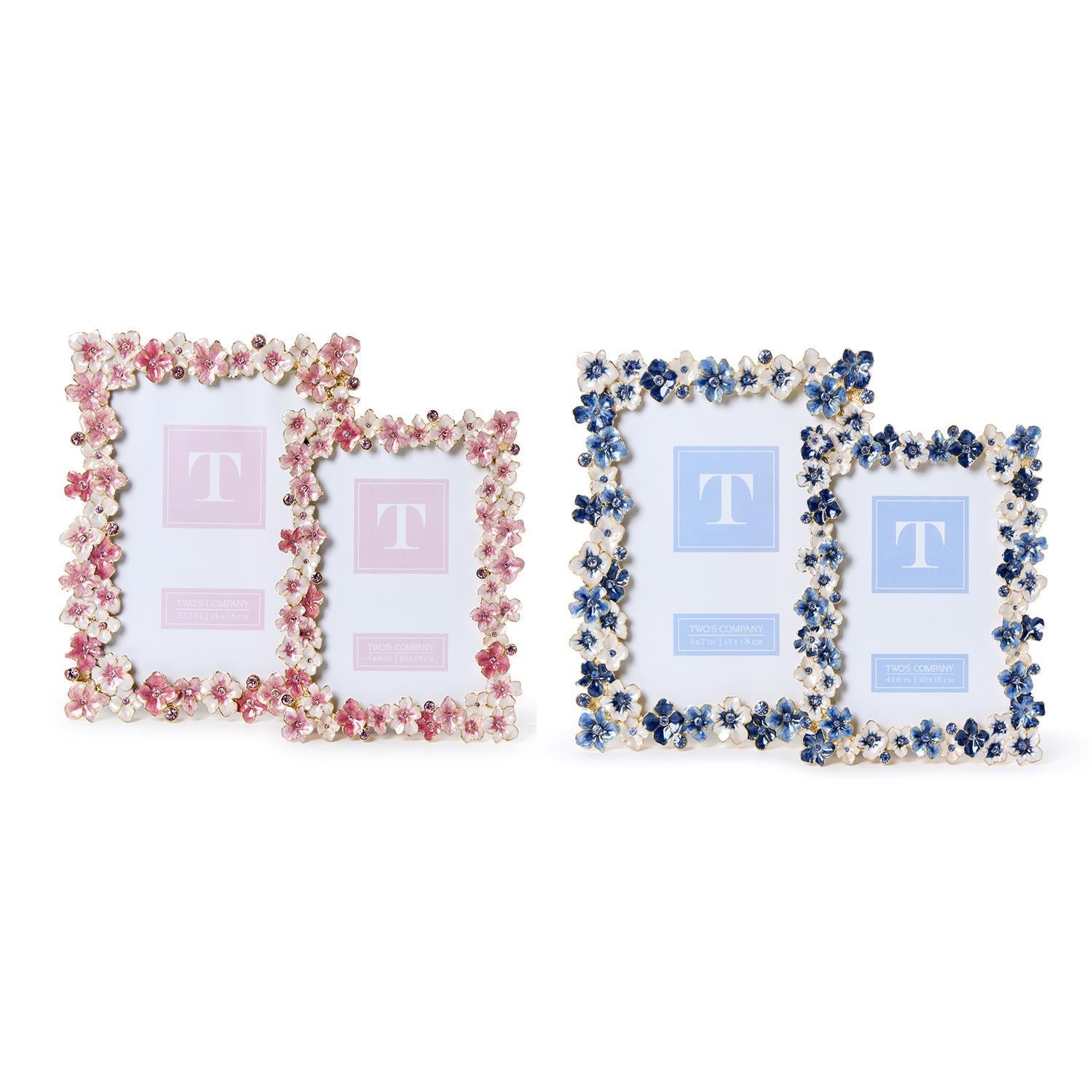 Capture your favorite moments in style with the Hydrangea Enamel Photo Frame! Featuring delicate hand-painted hydrangea enamel details in two delightful colors, these frames add a splash of charm to any space. Crafted from pewter, glass, and enamel, they perfectly fit 4" x 6" or 5" x 7" photos, displayed horizontally or vertically.