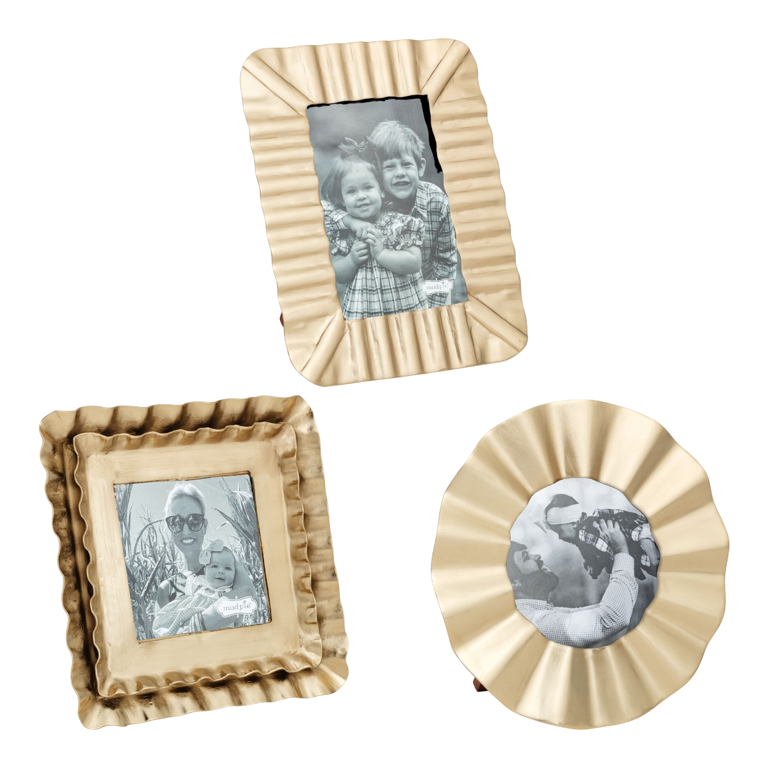 Tiny treasures deserve tiny frames! These charming mini brass frames feature delicate ruffle details that add a touch of vintage elegance to your favorite photos, pressed flowers, or cherished mementos.