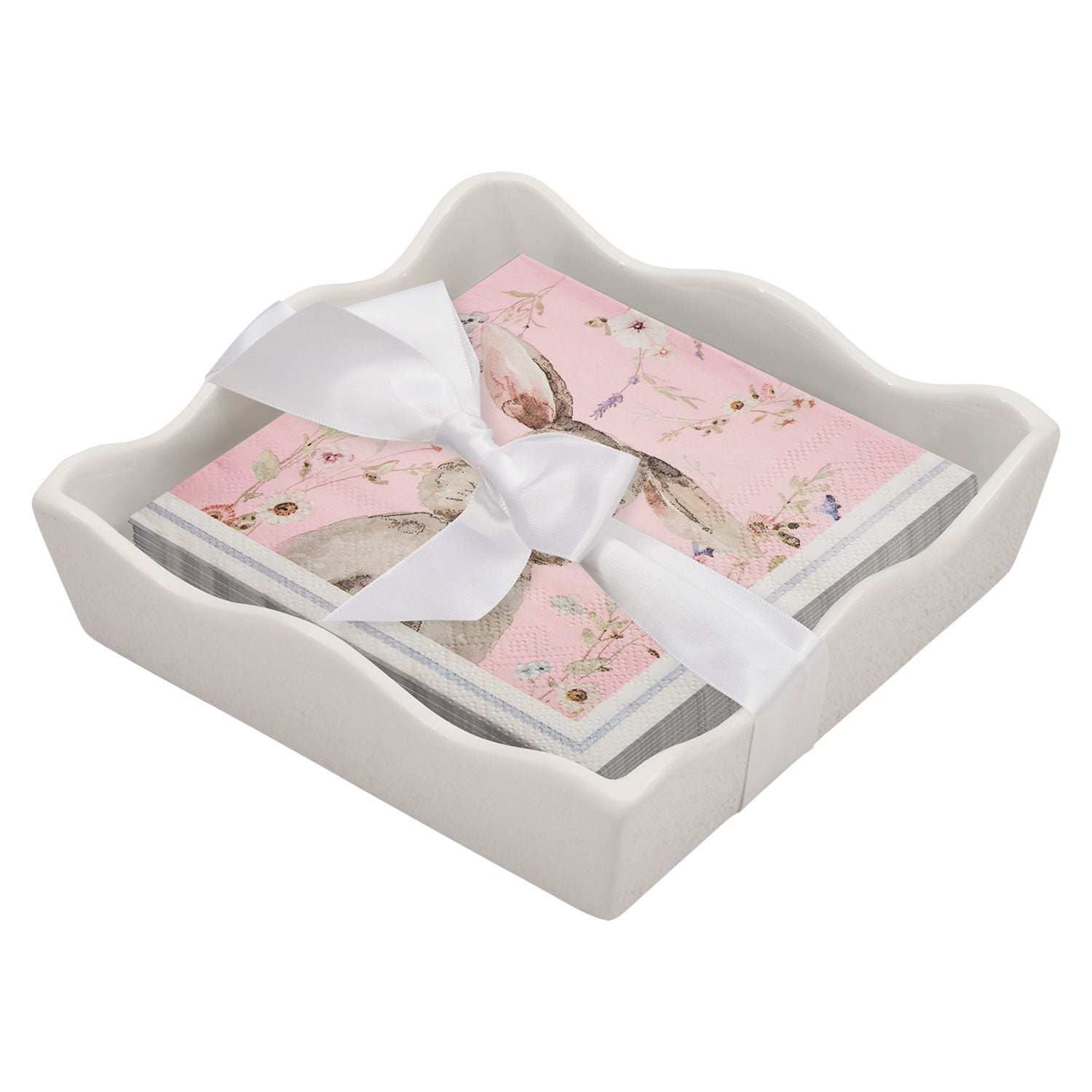 Elevate your table setting with this charming ceramic wave napkin tray, perfect for spring gatherings and Easter celebrations. The graceful wavy design adds elegant movement to any dining space, while the included cocktail napkins bring festive flair to your entertaining. Ideal for holding napkins, small treats, or decorative accents, this versatile piece combines functionality with artistic appeal. A thoughtful gift for hosts and home décor enthusiasts alike.
