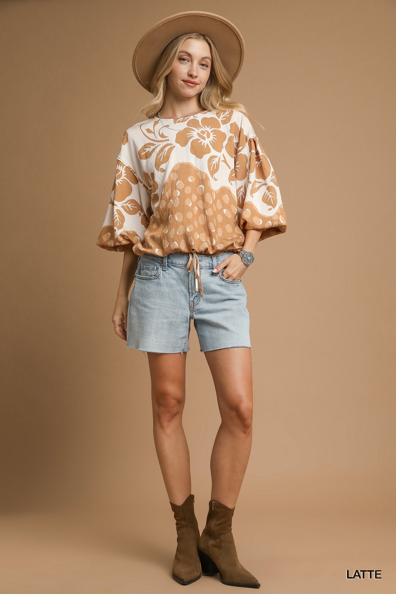Add a playful vibe to your wardrobe with this Floral Balloon Sleeve Top. It features puffy balloon half sleeves, an adjustable drawstring hem for a customizable fit, a sweet back keyhole button, and a rounded neckline that keeps things effortlessly cute. Perfect for breezy days or layering fun!