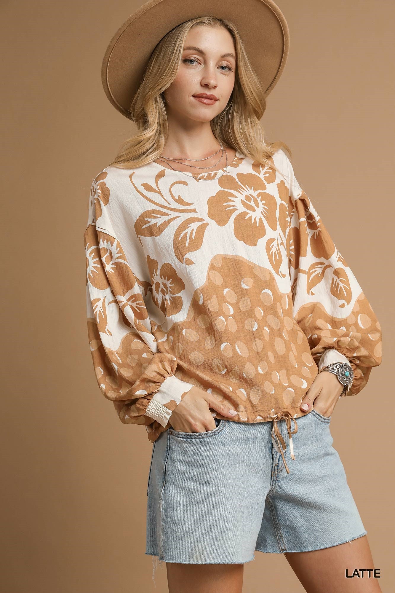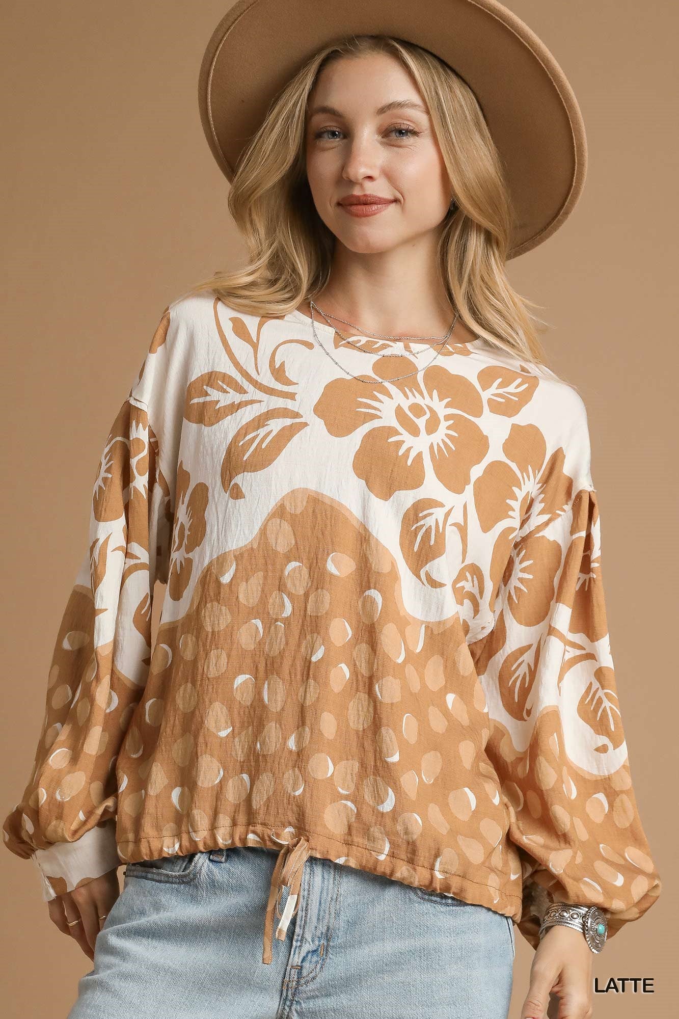 Floral Balloon Sleeve Top