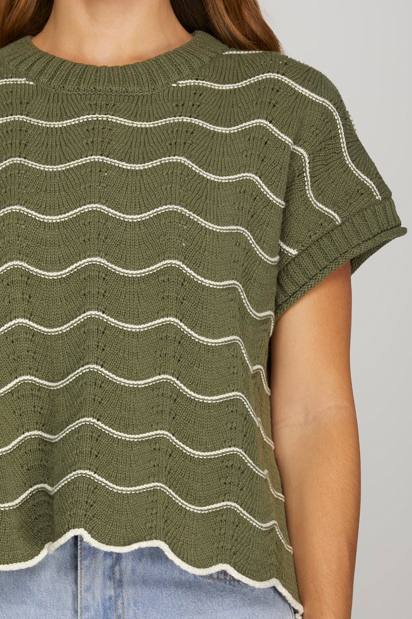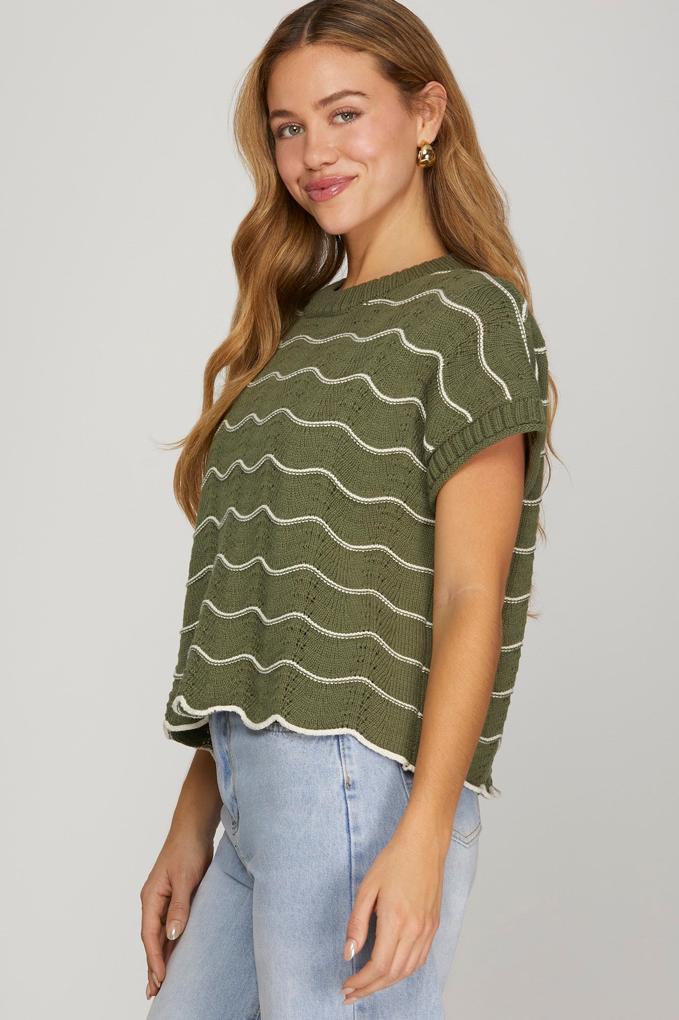 Celebrate the season in style with this playful Merry Merry Merry Sweater. Featuring short sleeves and charming puff details, it’s the perfect festive top to spread holiday cheer with a fun and flirty twist.