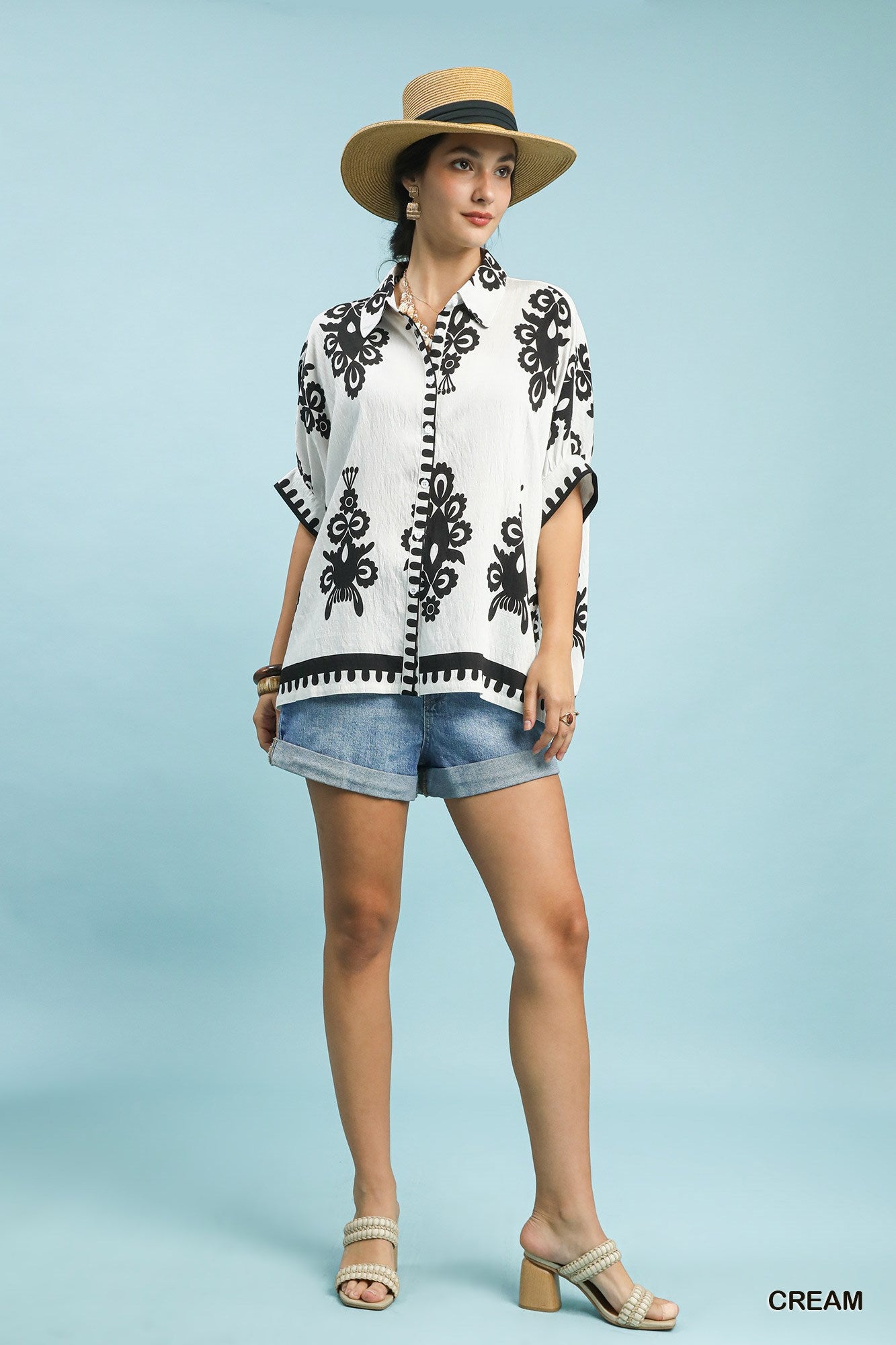 Oversized Abstract Print Button Down Top