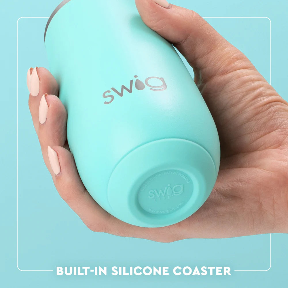 • Built-in silicone coaster base prevents slips, drips, and scratches