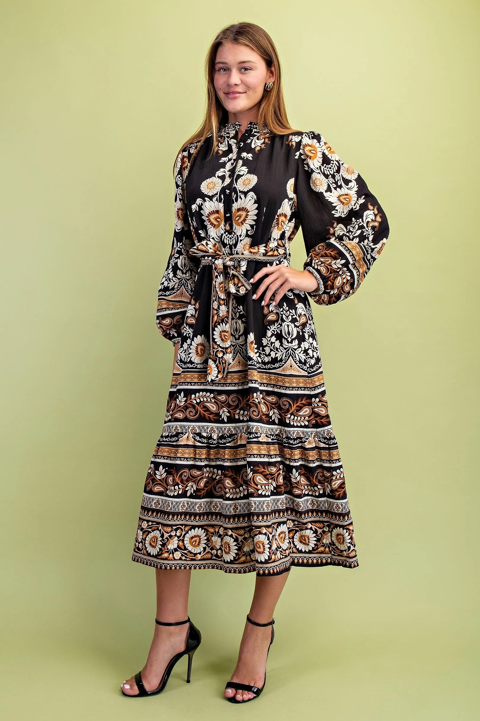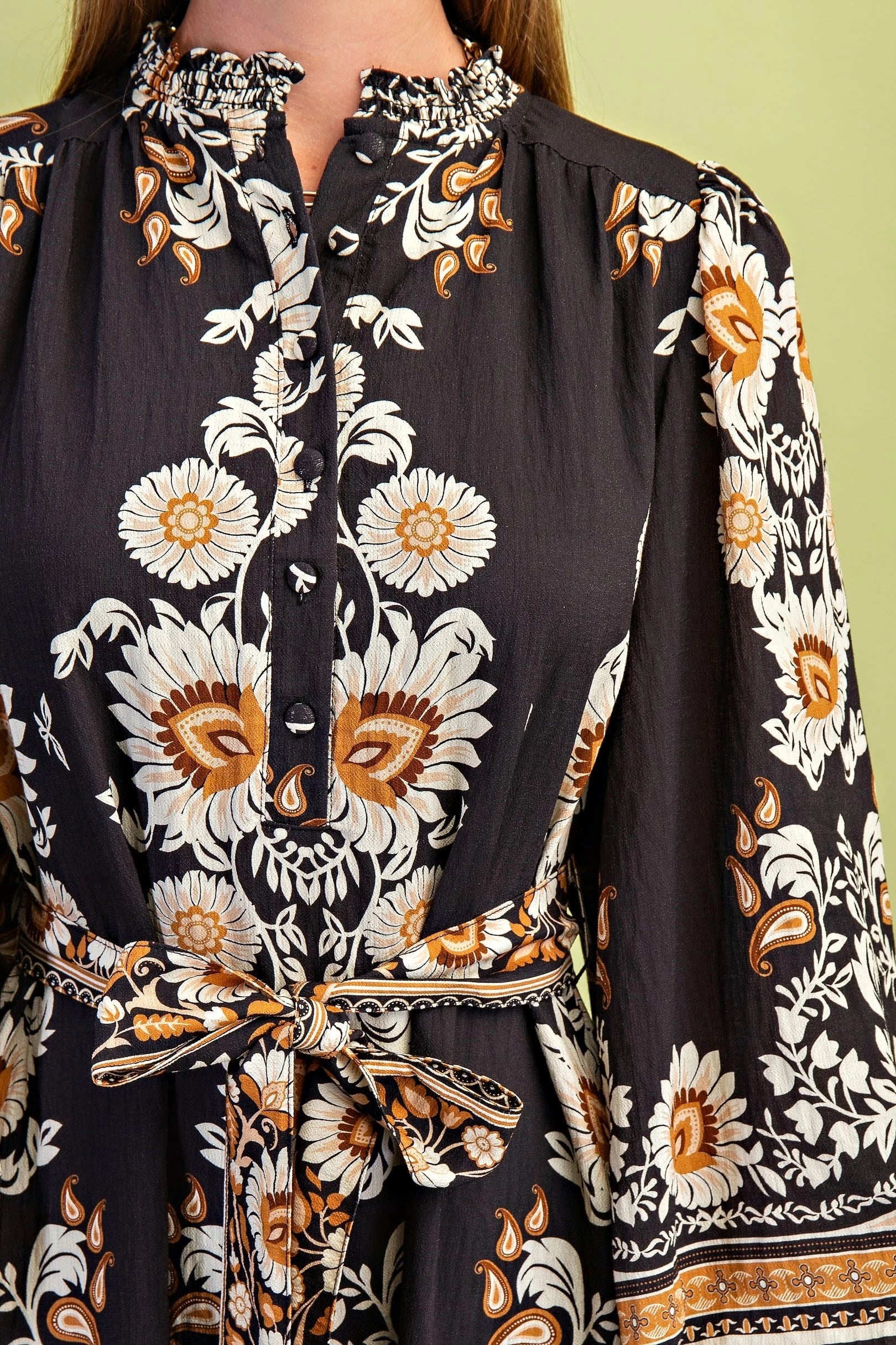 Brighten your days with the Floral Print Half Button Midi Dress! This dress features a smocked neck and a half-button front that add a touch of whimsy, while the belt tie defines your waist for a fun, flirty fit. The lined fabric ensures comfort and confidence every time you wear it.