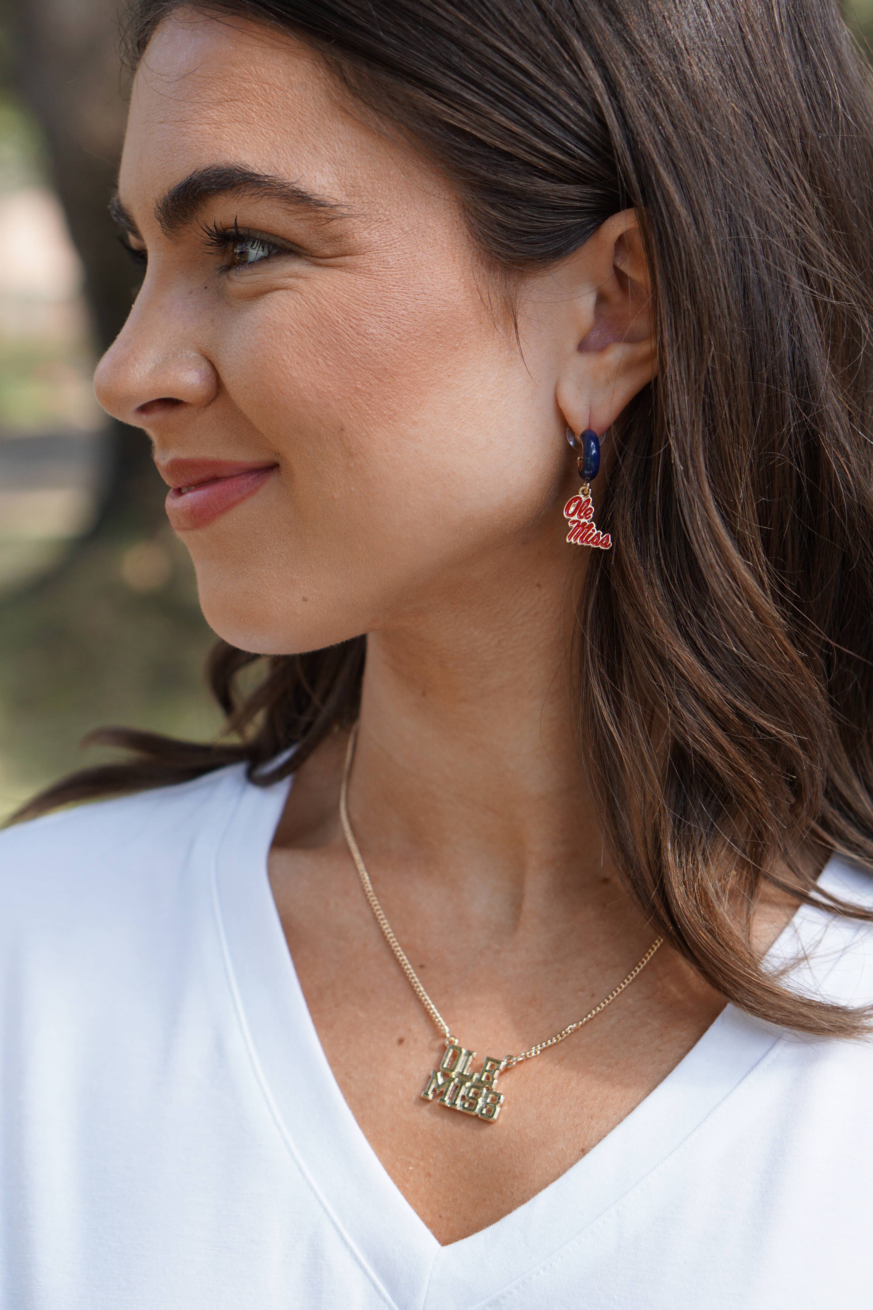 Show off your Rebel pride with these playful huggie hoop earrings! The enamel coated Ole Miss logo adds a touch of elegance to the maroon hoops.